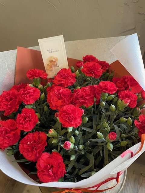 原点回帰でカーネーションの鉢植えをご用意!画像は赤ですが、色のご希望があれば備考欄にご記入下さい。ご要望にお応えできる限りはご用意させて頂きます。