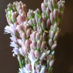 白が一般的なチューベローズ。ピンクの八重咲は珍しいです。