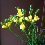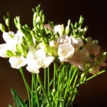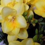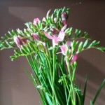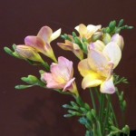 淡いピンクの八重咲フリージア。優しい雰囲気で素敵です。光の加減で白っぽく見えるところも・・・